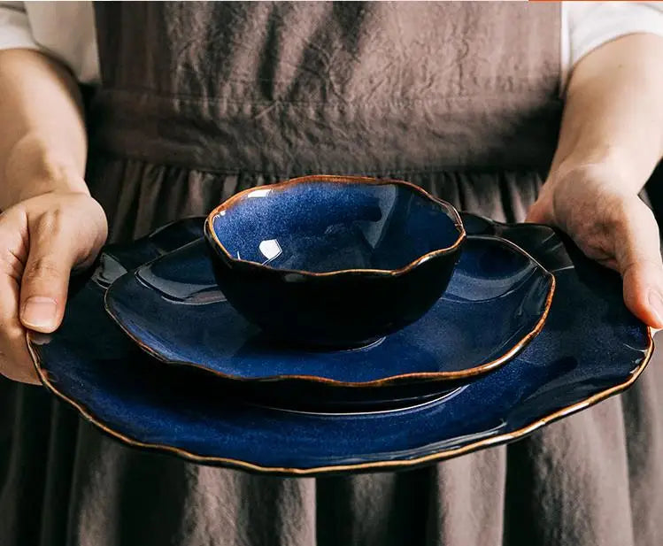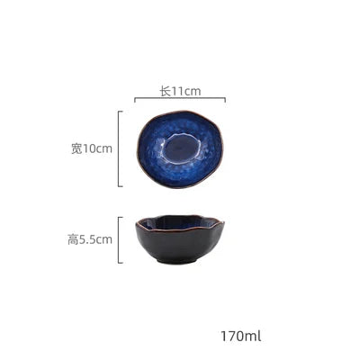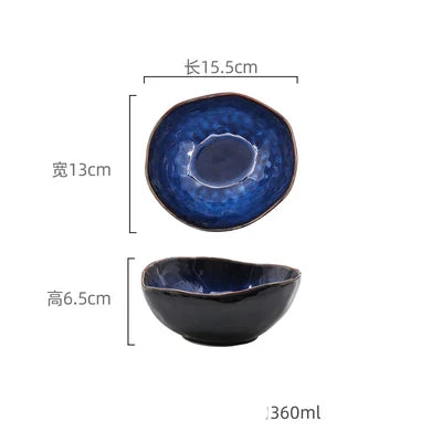 Cat Eye Blue Glaze Ceramic Bowl European Irregular Soup Bowl