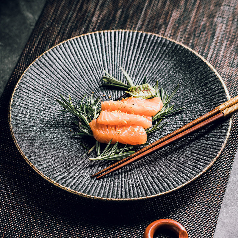 Color classification: 8-inch frosted black high-side fin plate, 8-inch frosted black high-side fin plate/gold, 10-inch frosted black high-side fin plate, 10-inch frosted black high-side fin plate/gold, 8-inch frosted black shallow plate/ Traced gold, 10" matte black platter / traced gold, 8" matte black striped disc, 8" matte black striped disc / traced gold, 10" matte black striped disc, 10" matte black striped disc / traced gold